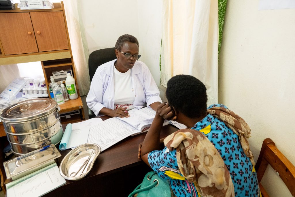 Christine, infirmière, est chargée du dépistage des lésions pré cancereuses du col de l’utérus, ici avec une patiente en entretien. C’est un acte de prévention déterminant car les femmes vivant avec le VIH ont 6 fois plus de risque de développer un cancer du col de l’utérus.