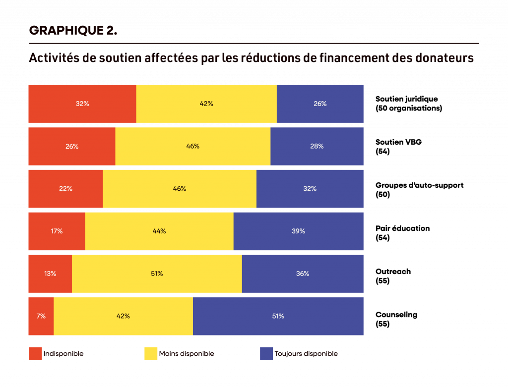 • 77% d’entre elles déclarent que les réductions de financements internationaux ont affecté la délivrance de services.