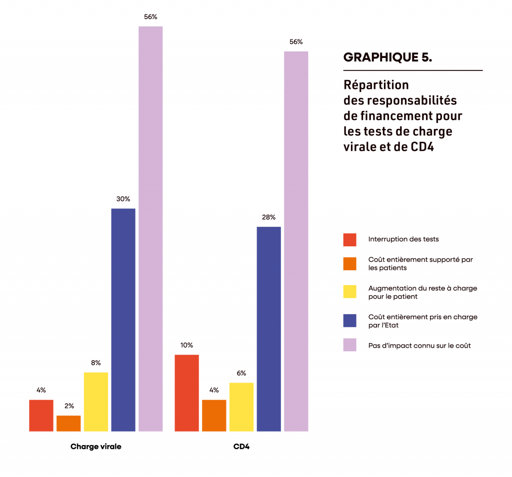 D’après les répondants, 56 % des organisations n’ont observé aucun changement dans la prise en charge des coûts des tests de charge virale (CV), tandis que 30 % indiquent que ces coûts sont désormais entièrement assumés par le gouvernement (Graphique 5).