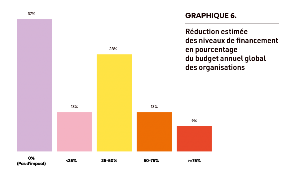 • Les personnes transgenres sont également fortement touchées : 71 % des organisations rapportent un impact sur leurs services, et 10 % ont arrêté complètement leurs activités.