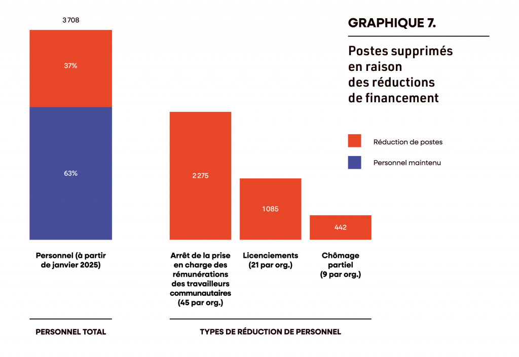 • Cette perte massive de personnel entraîne une rupture majeure des services, démantelant les composantes essentielles de la prestation communautaire.